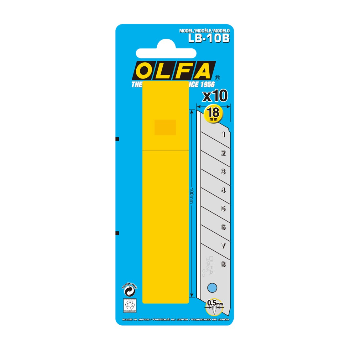 OLFA® support avec 10 lames de rechange 18mm, sous blister, LB-10B
